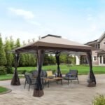 - Double Roof Design-2-tier canopy top with a wind vent, helps to enhance the air circulation inside the gazebo and provides the gazebo with more stability. With 4 drain holes on the fabric, will not hold water, keeping this shelter always dry for a longer service