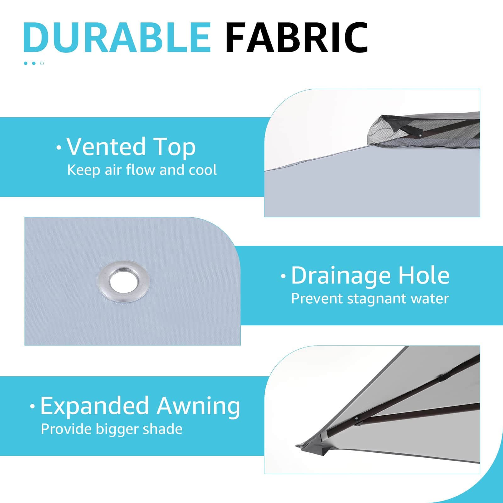 9ft Round Patio Umbrella, Polyester 8 Steel Ribs Large Table Market Umbrella, 5 Colors