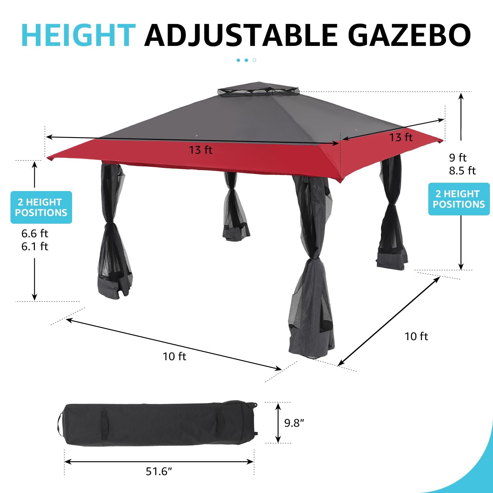 13’x13’ Pop Up Gazebo With Mosquito Netting Outdoor Canopy Tent Shade, Metal Frame