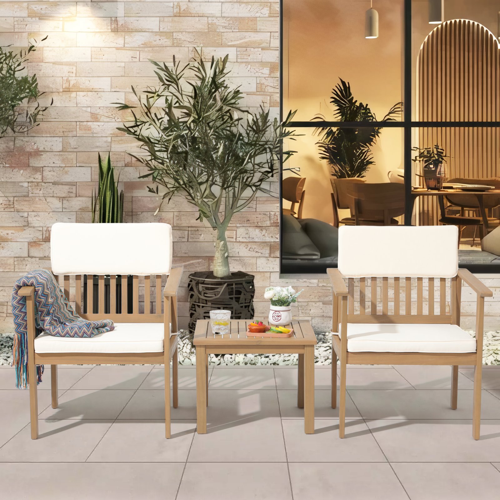 3 Piece Acacia Wood Outdoor Bistro Set, Wide Seat Patio Furniture Set
