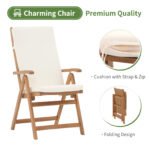 2pcs Folding Patio Dining Chairs, Outdoor Acacia Wooden Rope Reclining Chair w/Armrest
