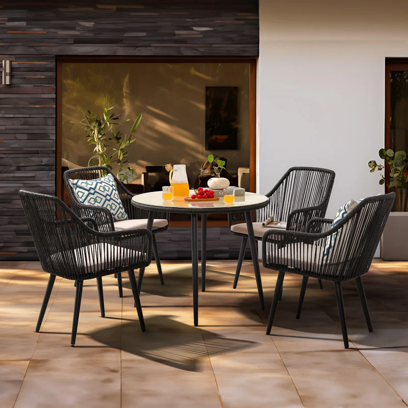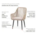- [Attractive Dining Chairs]: The outdoor dining chairs are simultaneously warm and inviting, stylish and intriguing. It can be used not only for multi-person dining but also for entertaining guests. Attractive weave design and contemporary style combine to add warmth and charm to your outdoor space.
