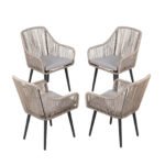 - [Unique & Durable]: Featuring a solid powder-coated frame, the patio dining chair charms tapered legs and wows with adjustable feet that are a natural complement. The twisted all-weather rope wicker is genuinely innovative and provides durability and easy care.