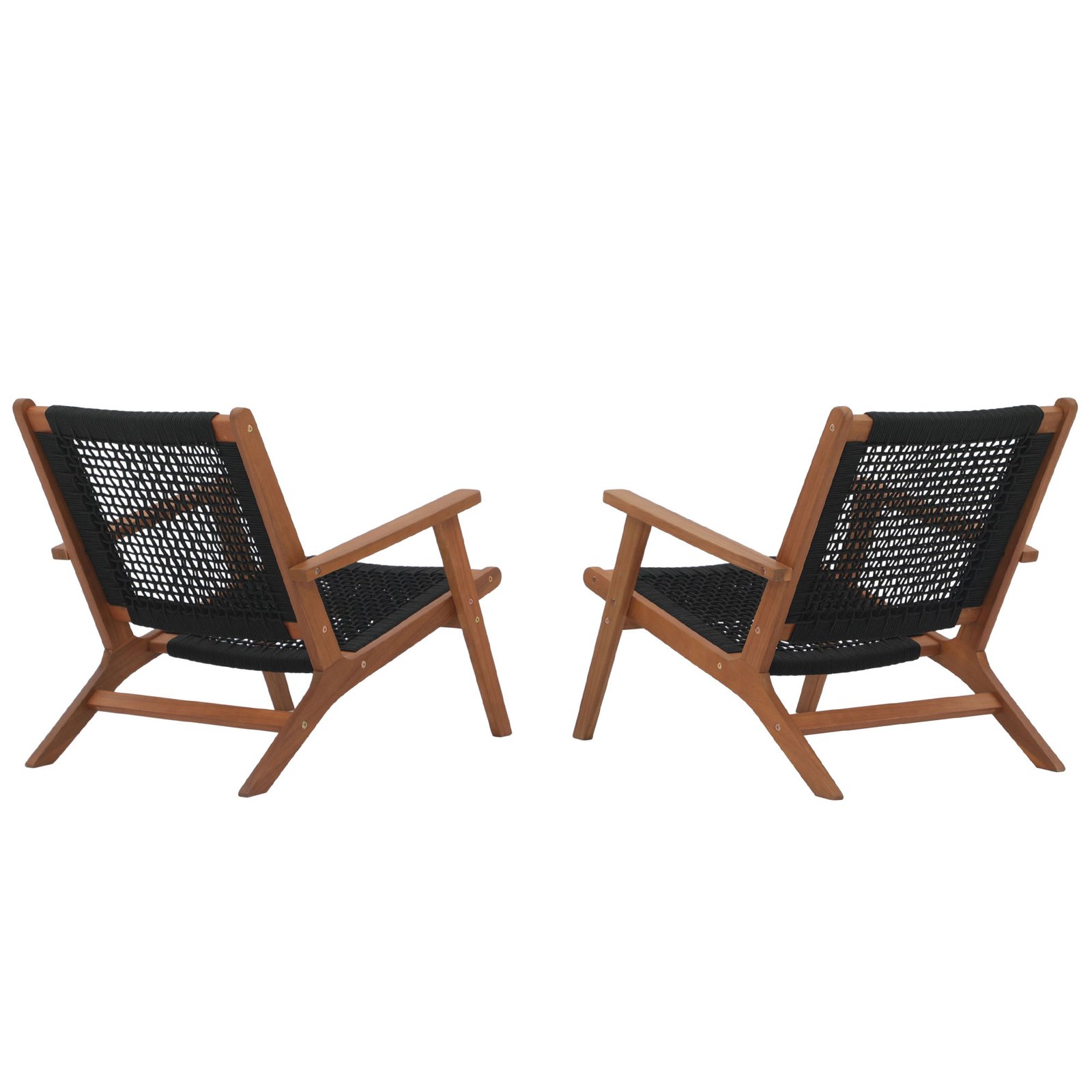 2pcs Wood Patio Lounge Chairs Modern Acacia Wood Accent Armchair with Handwoven Rope